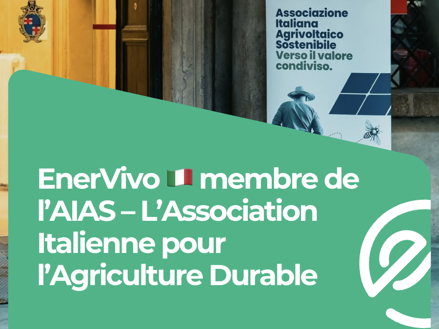 Nous sommes fiers d’annoncer qu’EnerVivo est dĂ©sormais officiellement membre de l’AIAS – l’Association Italienne pour l’AgrivoltaĂŻsme Durable, une organisation de rĂ©fĂ©rence engagĂ©e dans la structuration et le dĂ©veloppement de l’agrivoltaĂŻsme durable en Italie.